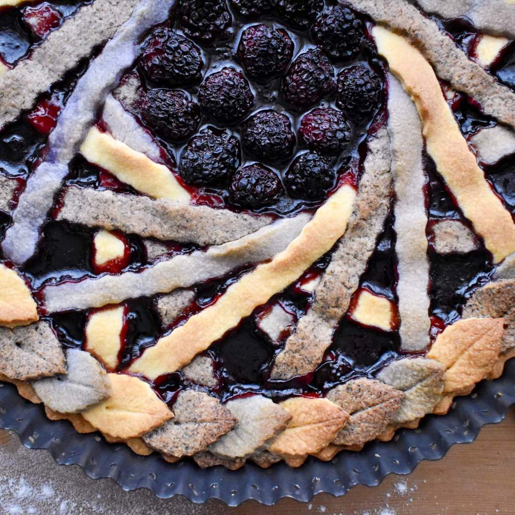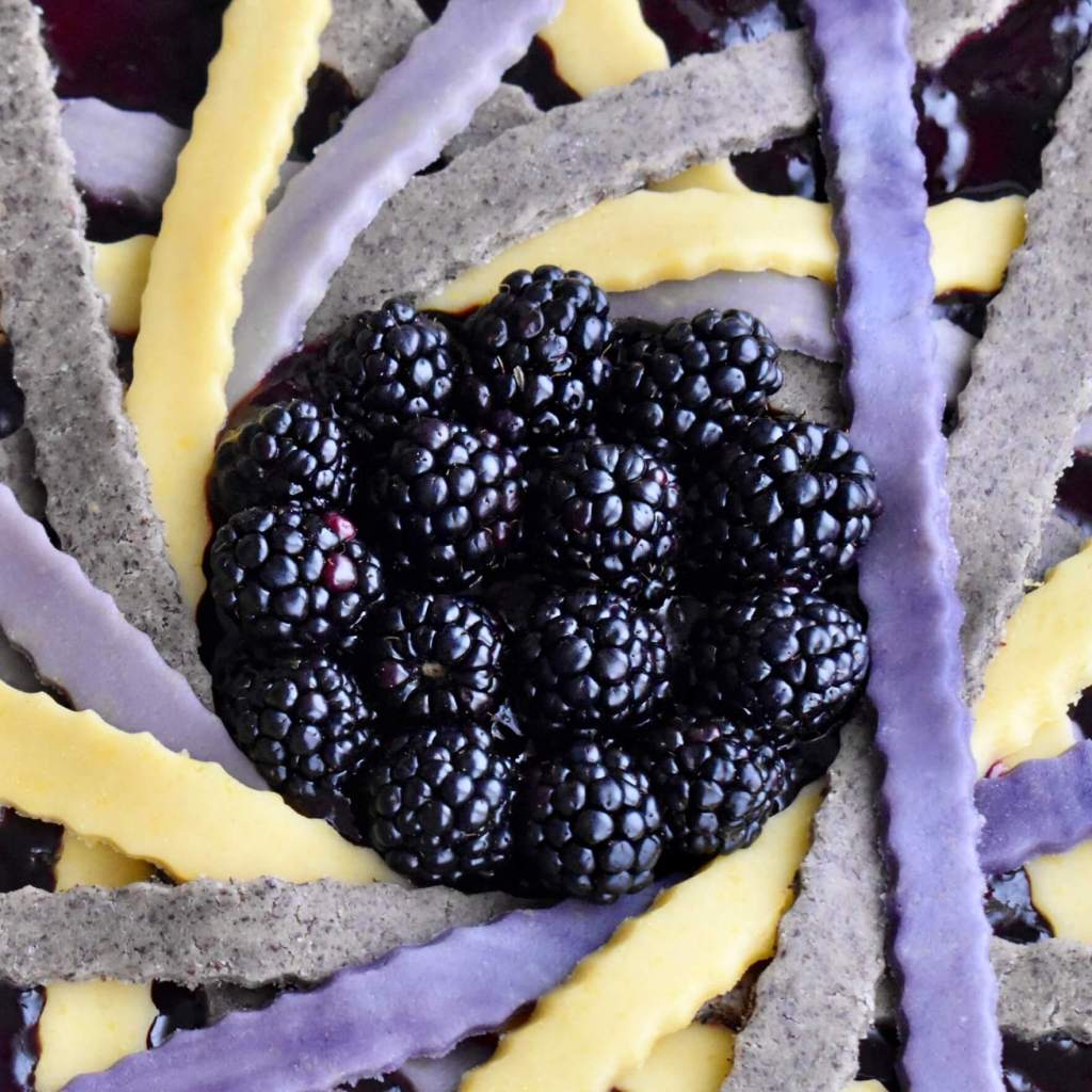Realizzo l’intreccio aiutandomi con un bicchiere (trovi il video sulla pagina Instagram @lefrolledicamilla) e completo la decorazione con delle more fresche.