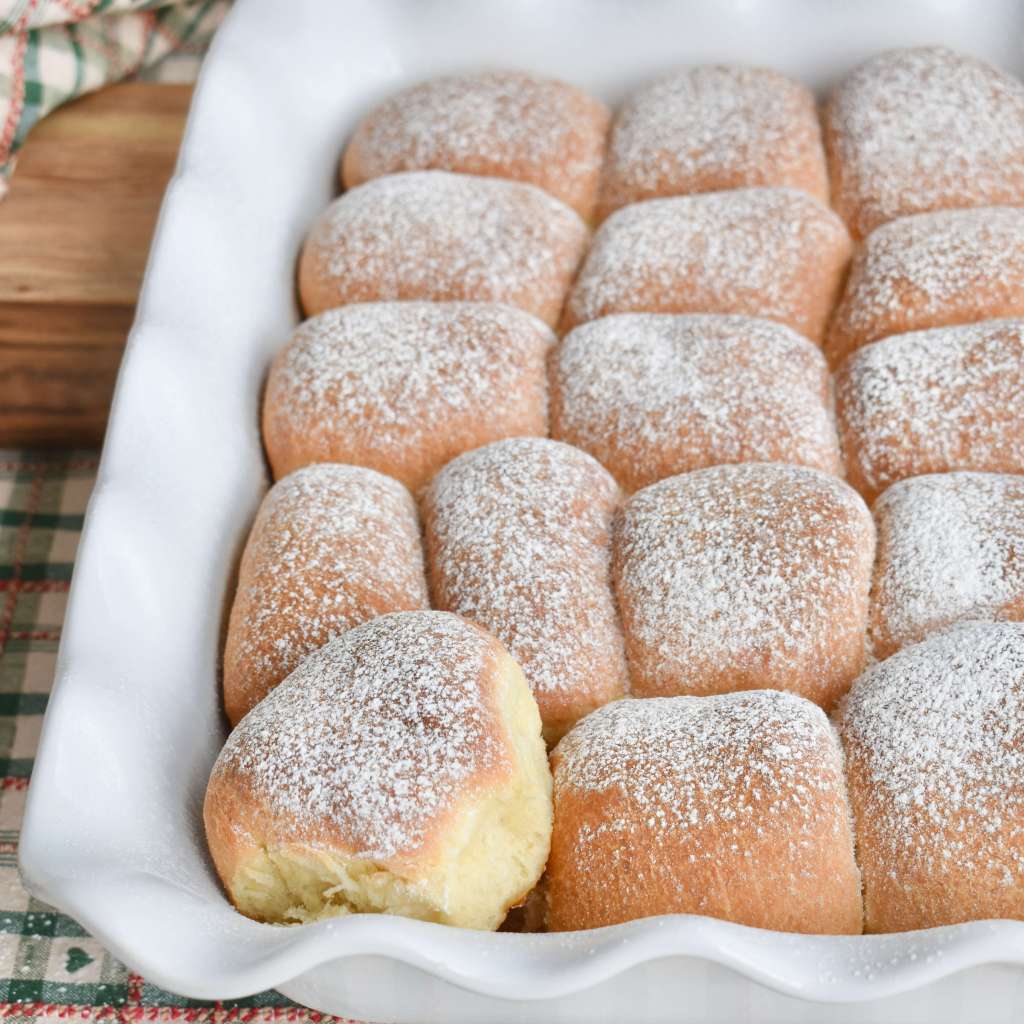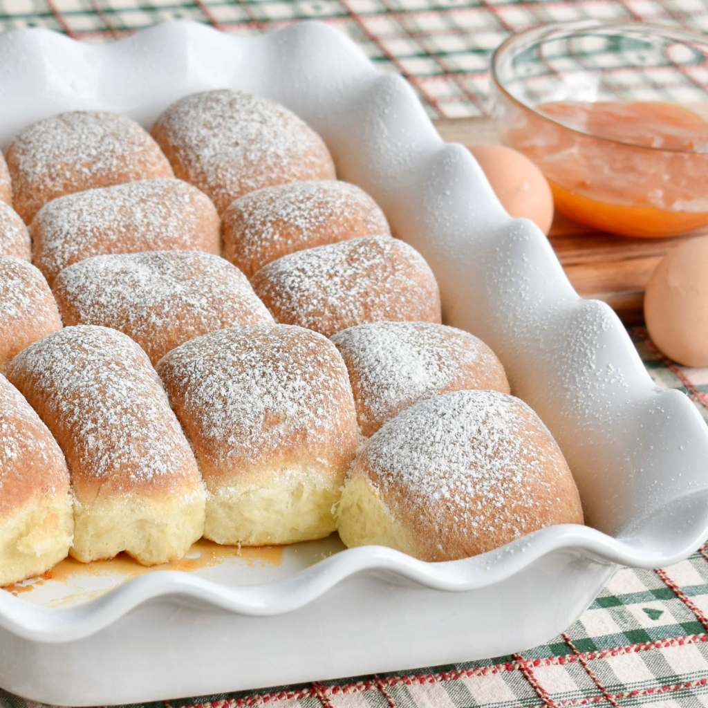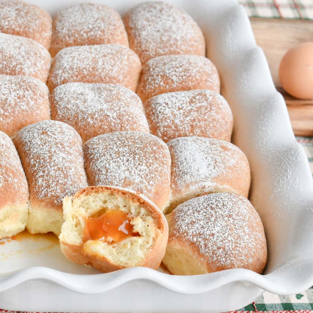 Dispongo i miei buchteln in una pirofila imburrata (con queste dosi io ho utilizzato una pirofila rettangole con misure 36 x 26 cm). Cottura a 180° in forno statico per 30 minuti. Faccio intiepidire i buchteln e li cospargo con lo zucchero a velo. I buchteln sono dolcetti che rendono al meglio se appena fatti, vanno serviti ancora tiepidi, sono soffici e deliziosi, provare per credere!
