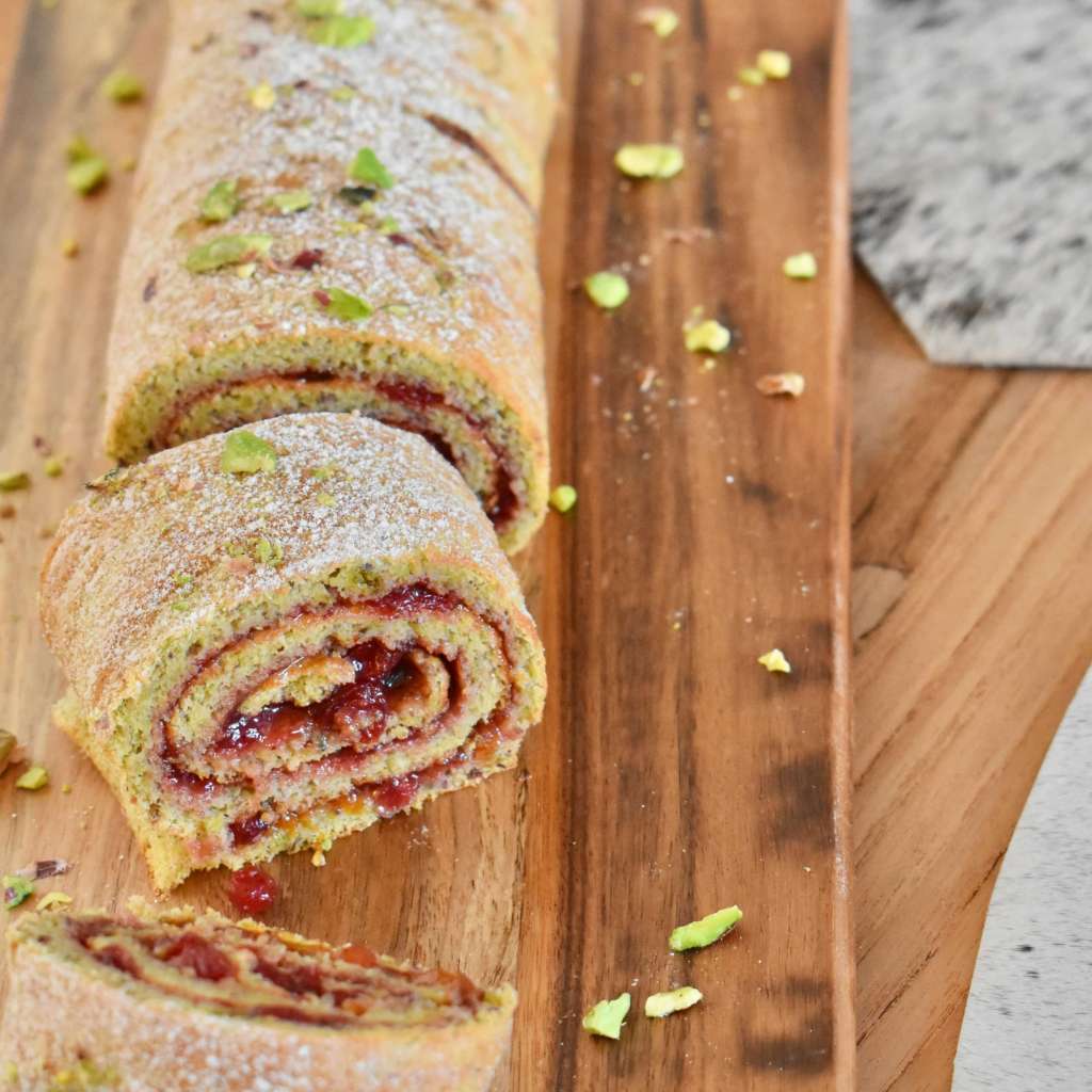 Zucchero a velo e pistacchi tritati per decorare.