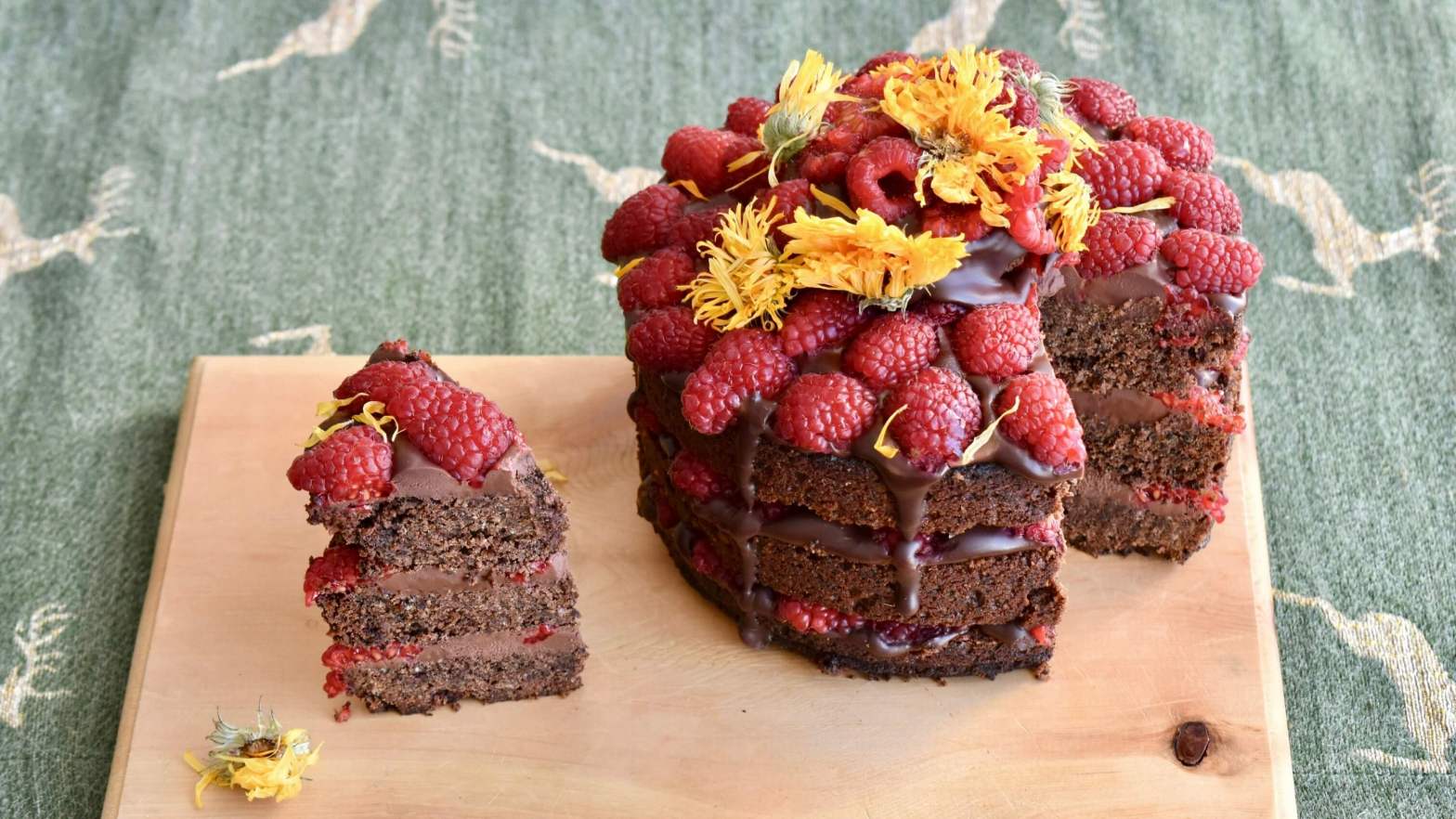 Torta di grano saraceno, frutti di bosco e cioccolato
